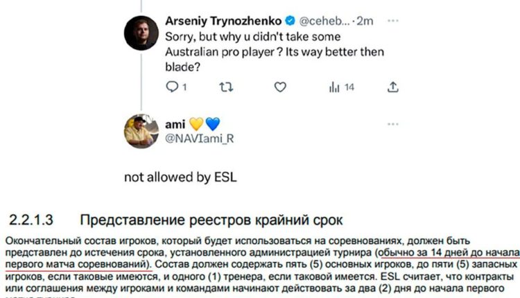Глава киберспортивного направления Natus Vincere Амиран ami Рехвиашвили объяснил, почему именно Андрей B1ad3 Городенский заменил Александра s1mple Костылева в составе клуба по CS2 на IEM Sydney 2023. Информацией ami поделился в твиттере, однако вскоре удалил сообщение.