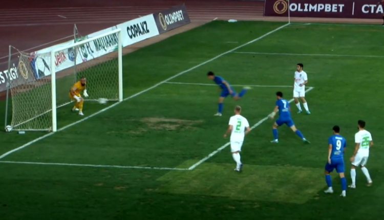 Ответный гол гостей получился не менее красивым — Ерсултан Калдыбеков навесил в район одиннадцатиметровой отметки, Абзал Таубай, пытаясь перекинуть голкипера хозяев Нурмухаметова, попал в перекладину, а оказавшийся первым на отскоке Адилет Кенесбек головой отправил мяч в ворота «Мактаарала».