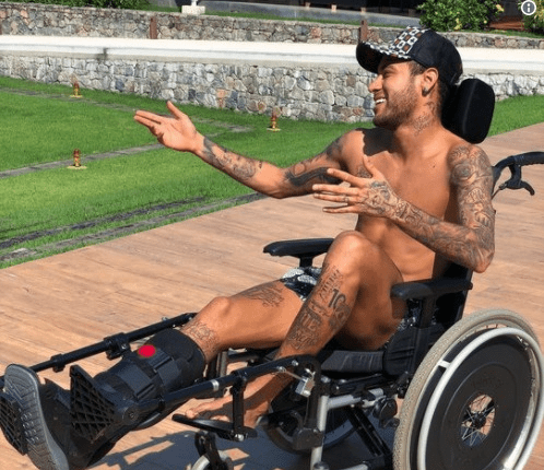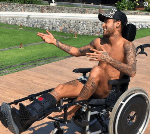 Форвард «ПСЖ» Неймар выложил фотографию, на которой он сидит в инвалидной коляске. Фото опубликовано на странице спортсмена в твиттере, передает SportX.kz.