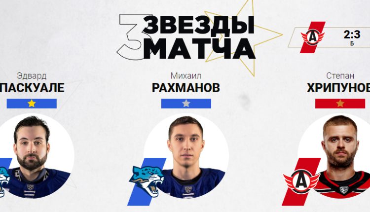 Голкипер Эдвард Паскуале и нападающий Михаил Рахманов стали первой и второй звездами победного для «Барыса» матча с «Автомобилистом», третьей звездой встречи признан нападающий екатеринбуржцев Степан Хрипунов.