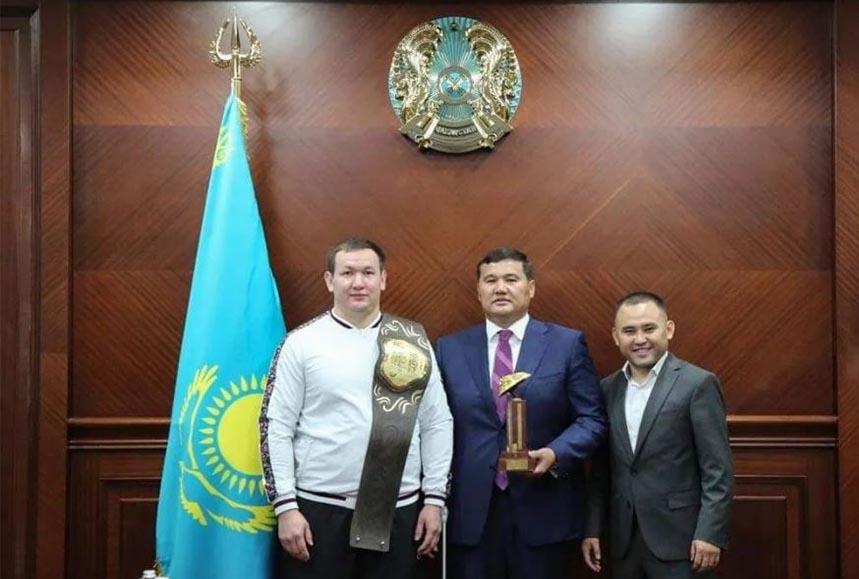 Глава региона поздравил Максата Исагабылова с победой, а также выразил искреннюю благодарность наставнику палуана, старшему тренеру области по қазақ күресі Болатбеку Кенееву.