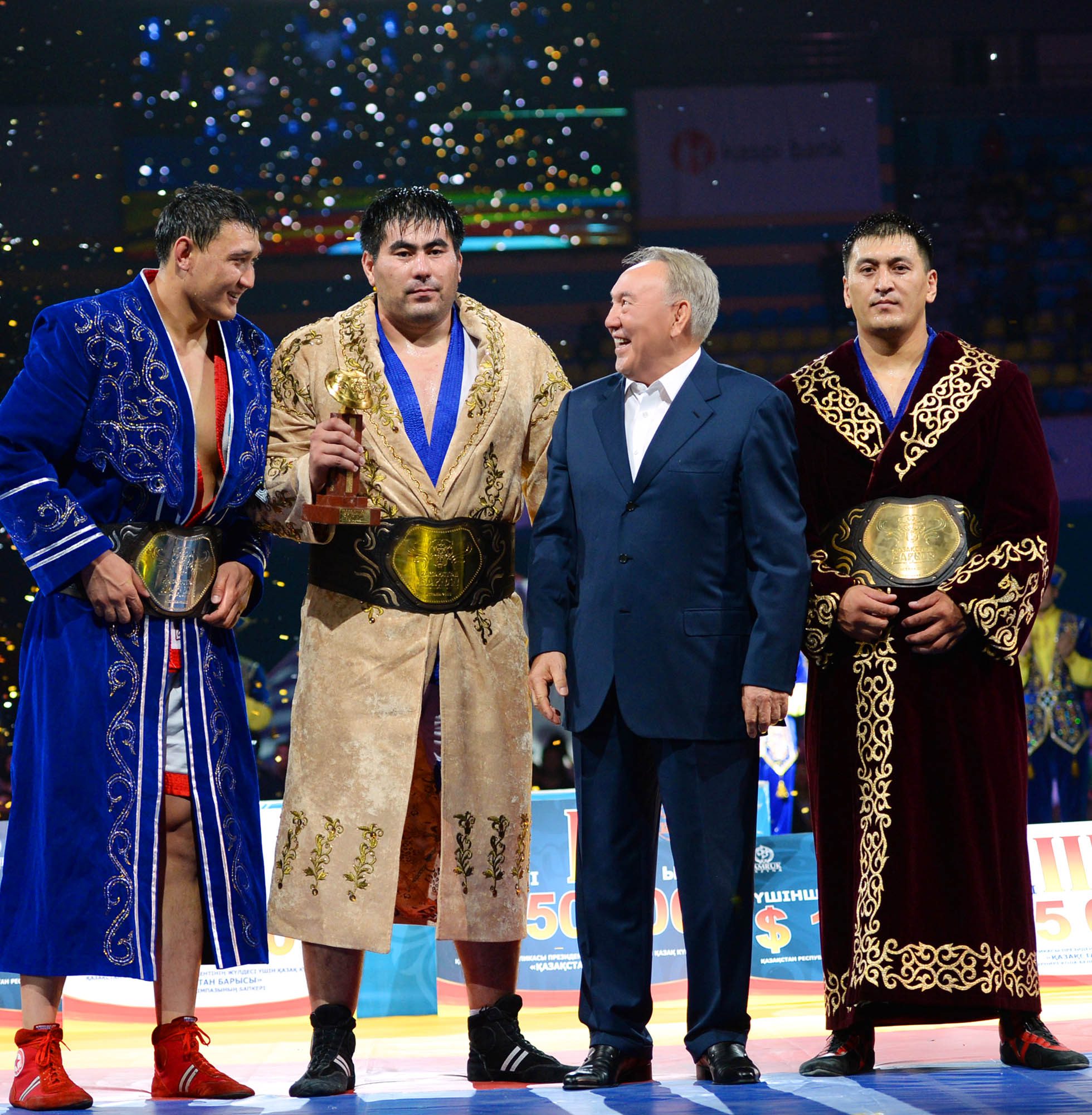 Важные слова. Финальные схватки «Казахстан Барысы» часто посещают первые лица Казахстана. Регулярно чемпионов награждал Первый Президент Казахстана Нурсултан Назарбаев.