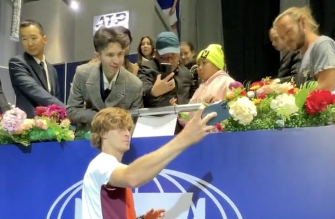 Девятая ракетка мира Андрей Рублев провел импровизированную фотосессию с болельщиками. Для этого он специально задержался на корте после матча первого круга Astana Open c сербским теннисистом Ласло Джере, в котором одержал победу в двух сетах (6:4, 6:3).