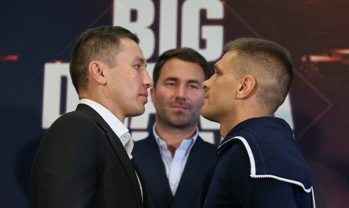 Казахстанский боксер и Геннадий Головкин и украинец Сергей Деревянченко провели дуэль взглядов, сообщает SportX.kz.