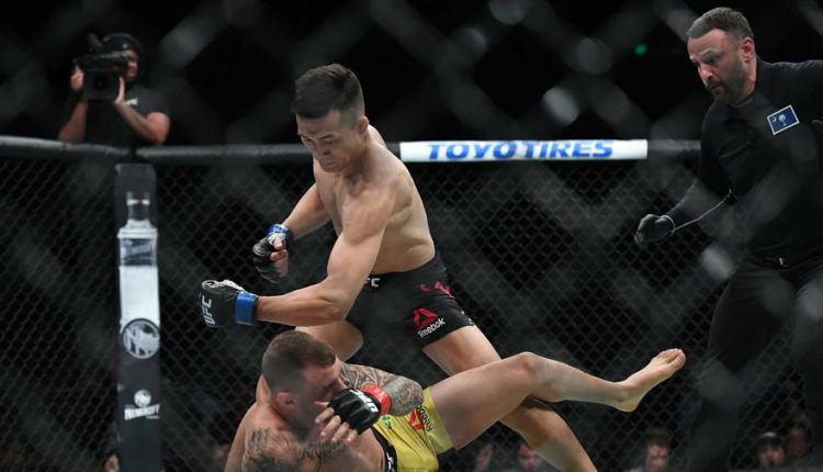Корейский Зомби (14-5) победил Ренато Мойкано (13-3-1) техническим нокаутом в первом раунде (удары руками);
