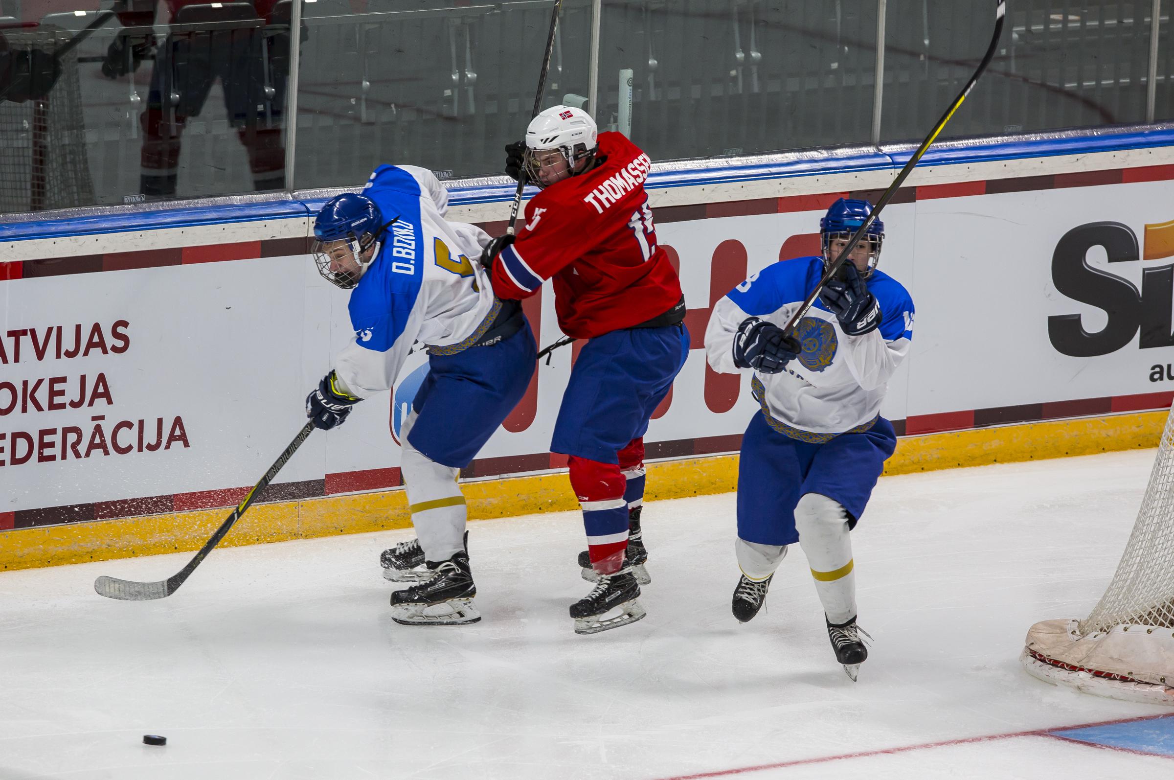 Единственную шайбу в матче забросил форвард германцев Янник Валенти на 17 минуте первого периода, когда команды играли в равных составах. Казахстанские юниоры не смогли использовать 10 штрафных минут соперника. В то же время, не позволили германцам реализовать четырехминутное отсутствие на площадке своих игроков.